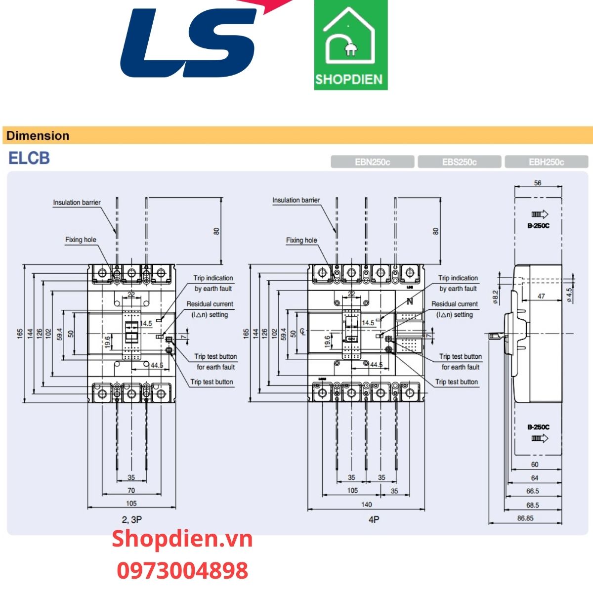 TÊN SẢN PHẨM: EBS204C LS ELCB 4P 175A 30mA Aptomat chống rò chống giật điện