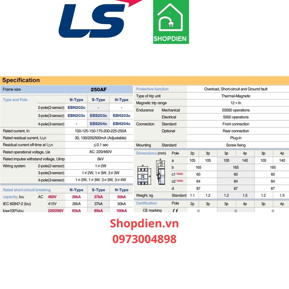 Mã hàng : EBS204C 4P 175A