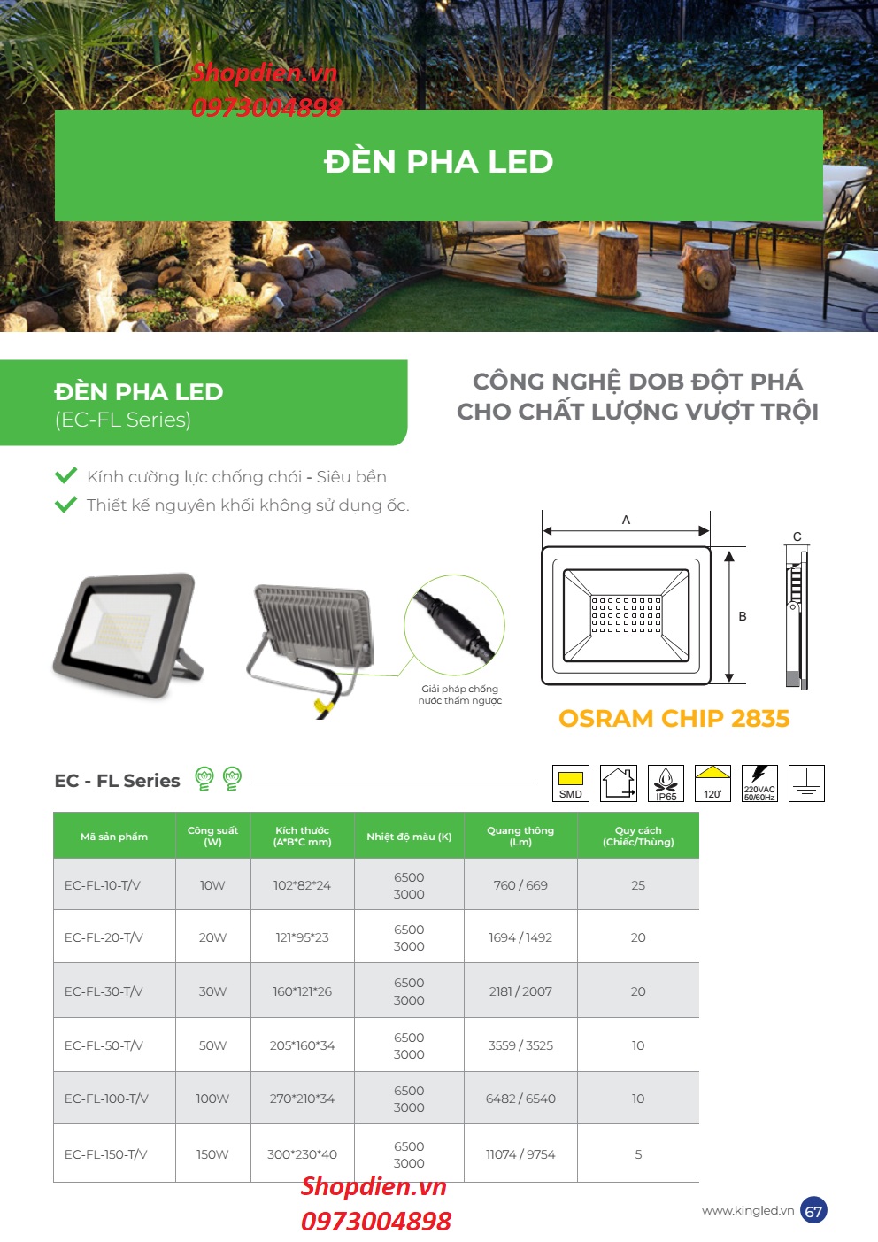 Thông số kỹ thuật đèn pha LED 30W EC-FL-30 KINGECO: