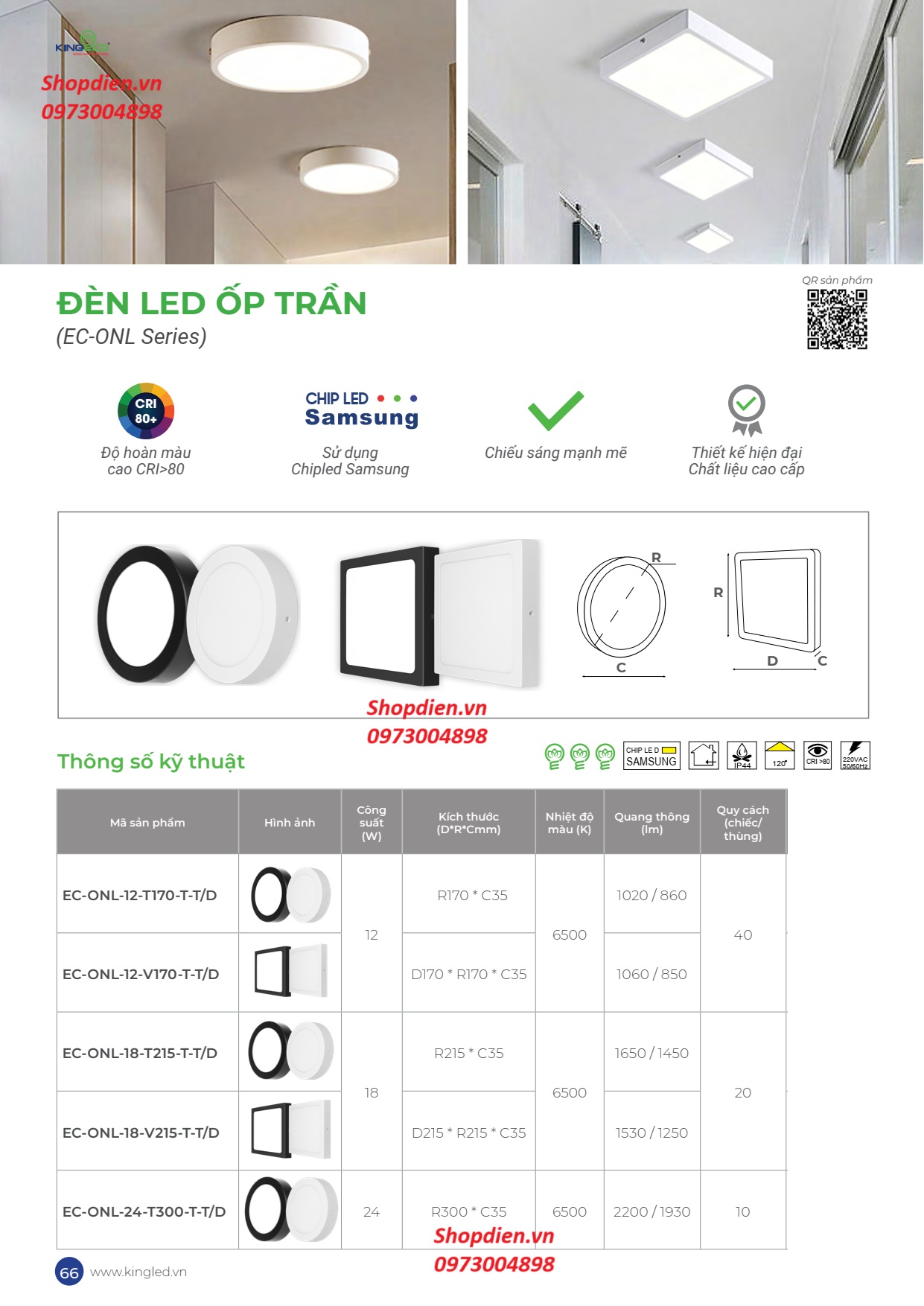 Catalogue: Đèn ốp trần 18W D215 EC-ONL-18-T215 Kingeco