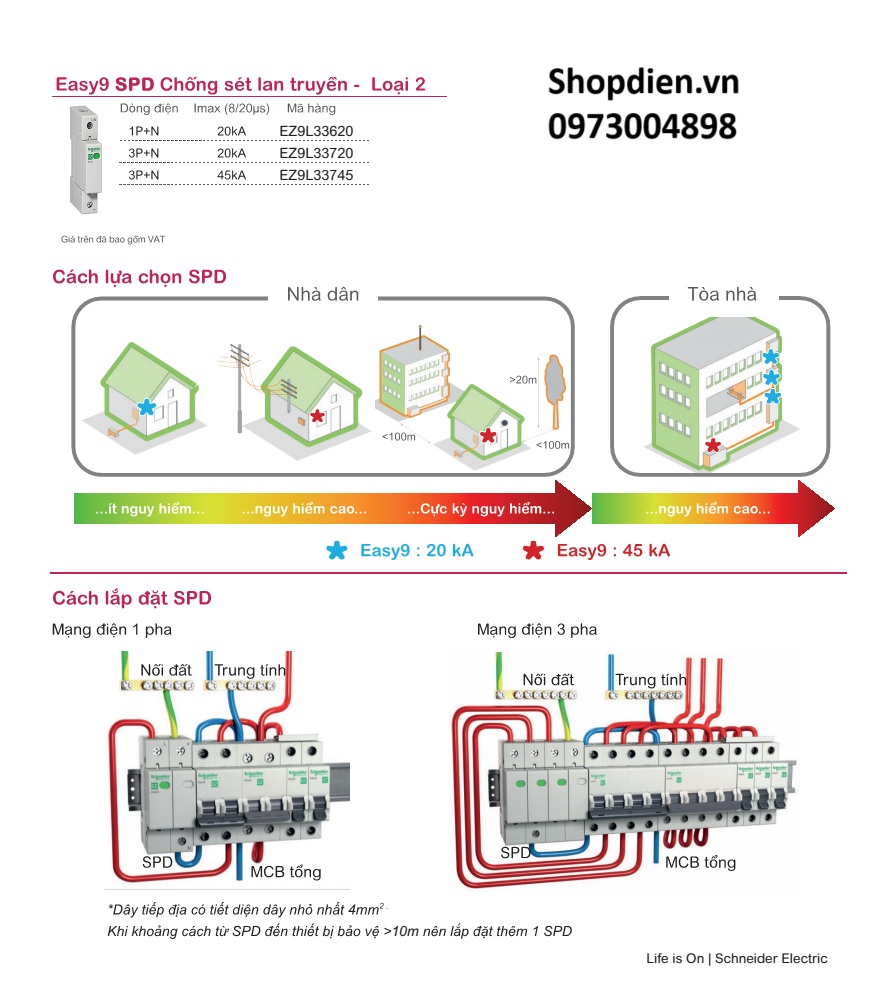 Quý khách hàng có nhu cầu tư vấn sử dụng Chống sét lan truyền 3P+N 20KA Easy9 SPD EZ9L33720 của Schneider electric vui lòng liên hệ với www.shopdien.vn hoặc hotline 0973004898.