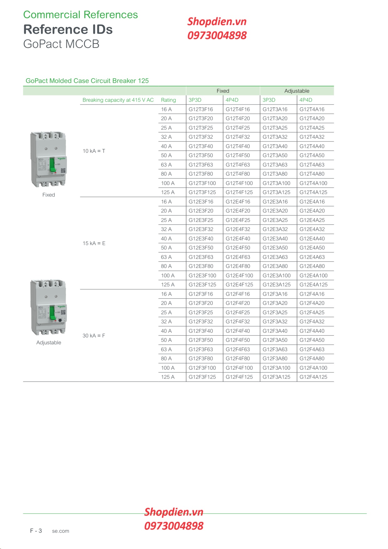 Catalogue Aptomat Cầu dao tự động MCCB 3P 20A 10kA G12T3A20 Gopact 125T