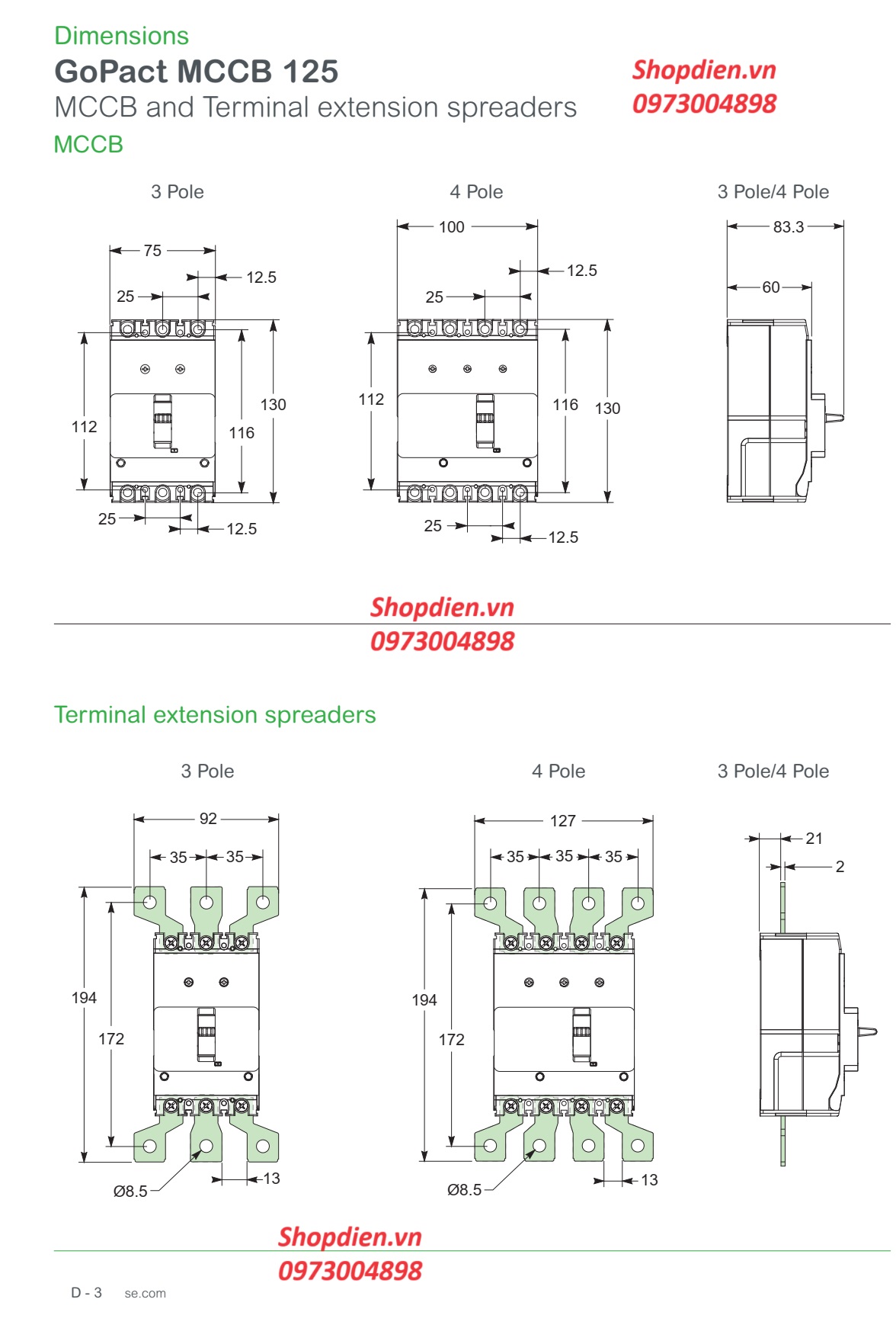 Quý khách hàng có nhu cầu tư vấn sử dụng Aptomat Cầu dao tự động MCCB 3P 20A 10kA G12T3A20 Gopact 125T của Schneider electric vui lòng liên hệ với www.shopdien.vn hoặc hotline 0973004898.