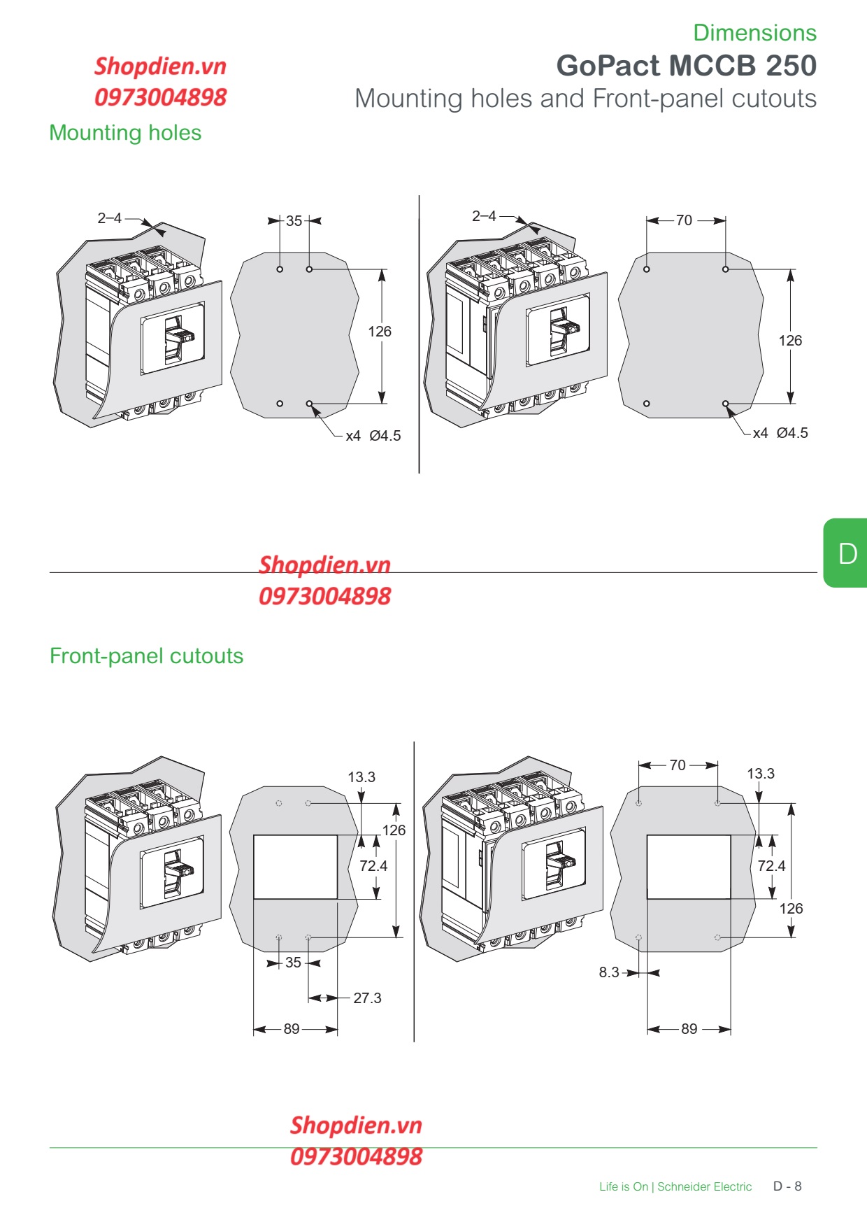 Quý khách hàng có nhu cầu tư vấn sử dụng Aptomat Cầu dao tự động MCCB 3P 250A 36kA G25F3A250 Gopact 250F của Schneider electric vui lòng liên hệ với www.shopdien.vn hoặc hotline 0973004898.