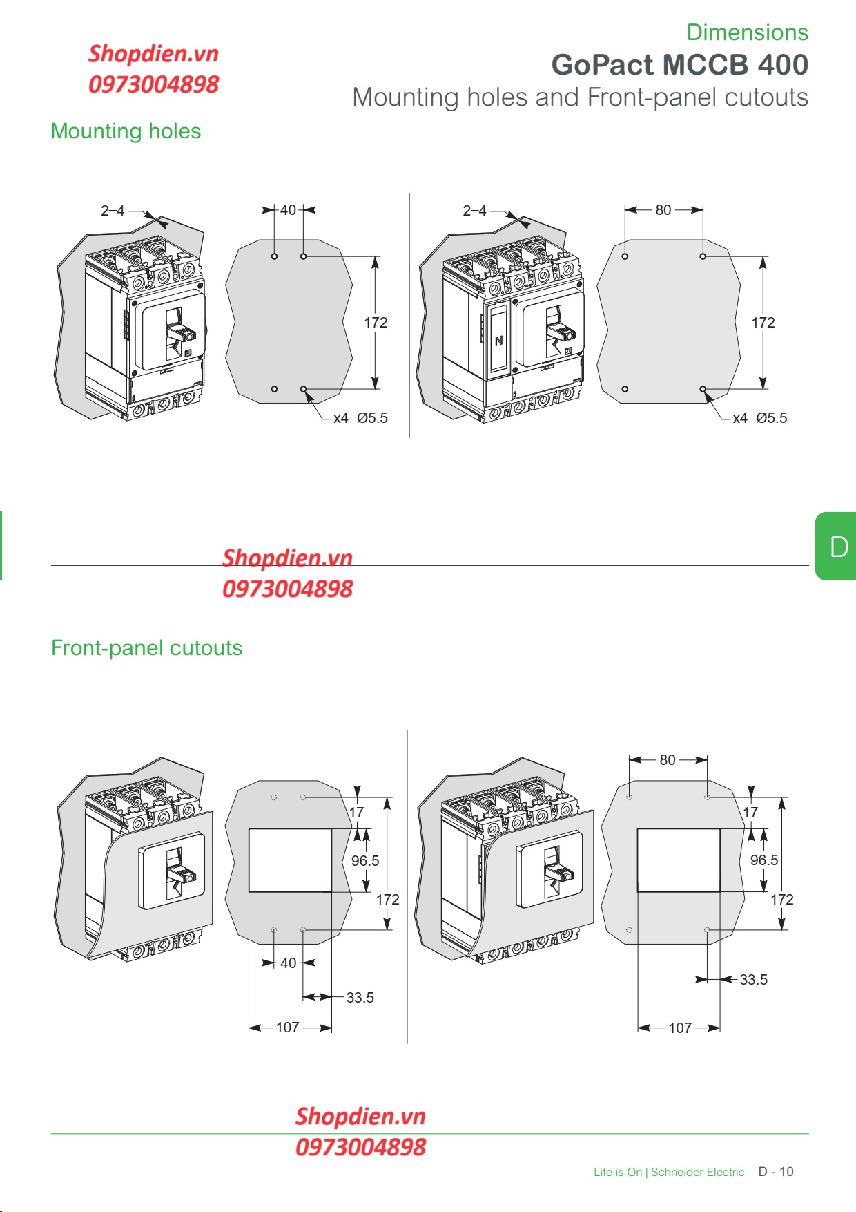 Catalogue Aptomat Cầu dao tự động MCCB 4P 320A 50kA G40N4A320 Gopact 400N