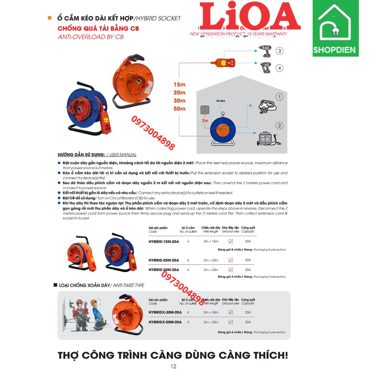 Ổ cắm LIOA HYBRIDX-30m-20A – đồng hành tin cậy cho mọi công việc đòi hỏi nguồn điện mạnh mẽ và an toàn tuyệt đối.