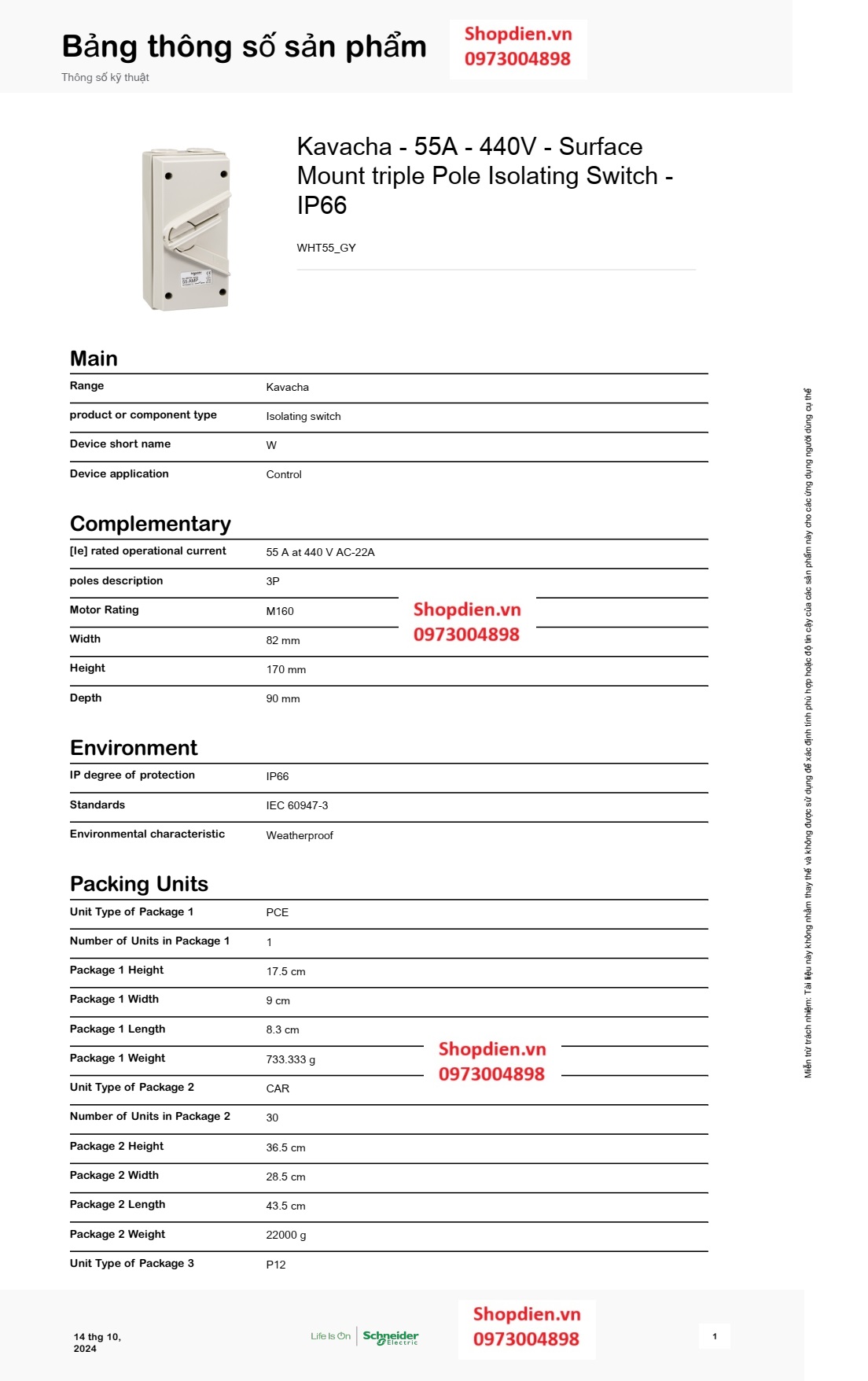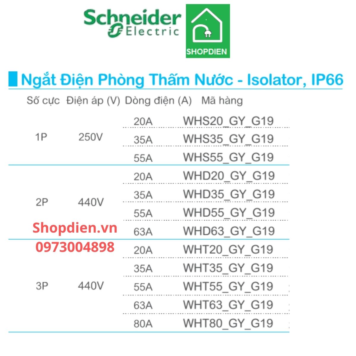 Catalogue ISOLATOR Cầu dao 3P 63A SCHNEIDER WHT63_GY_G19 ngắt điện chống thấm nước