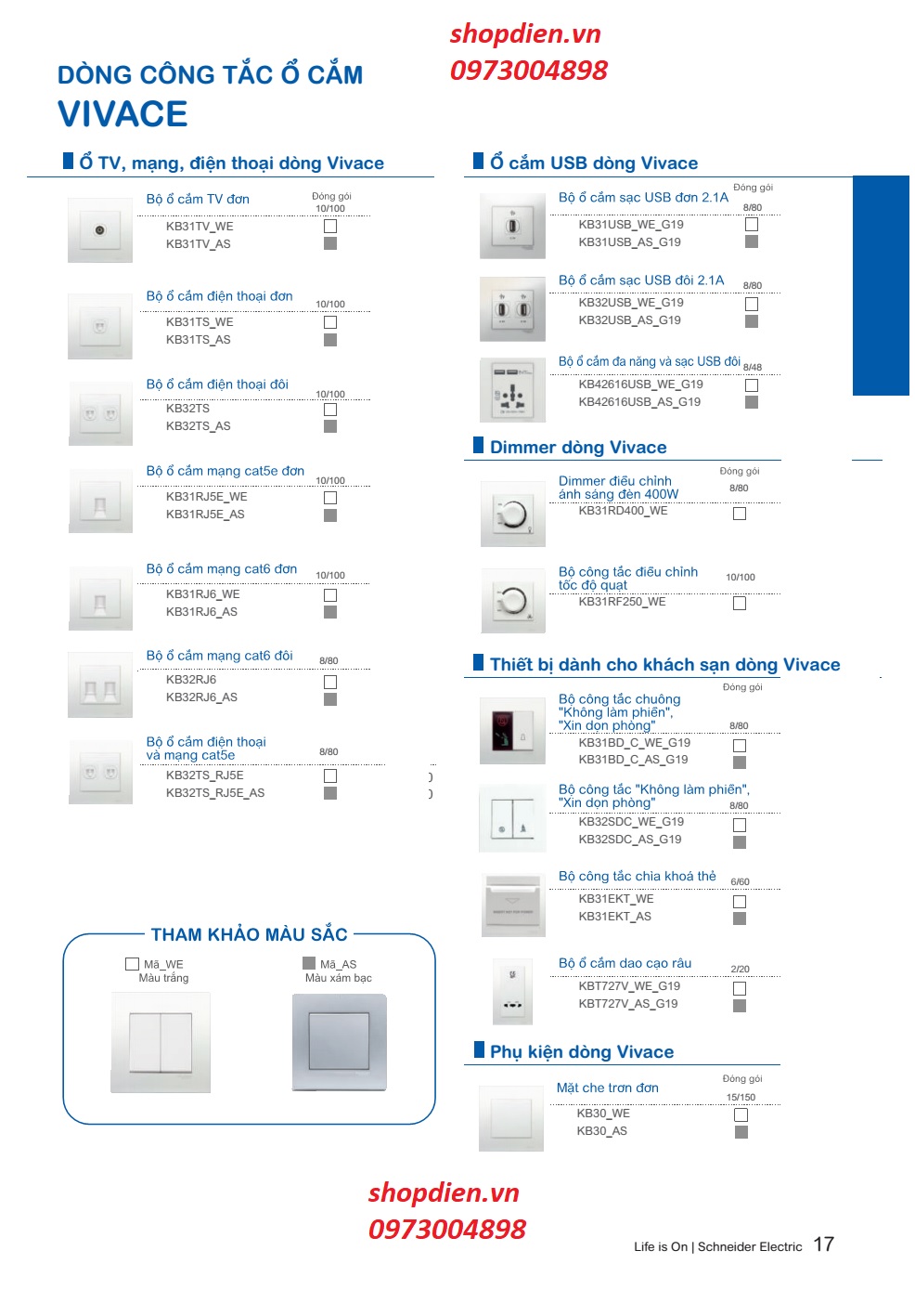Catalogue Công tắc ổ cắm Vivace schneider Schneider Electric