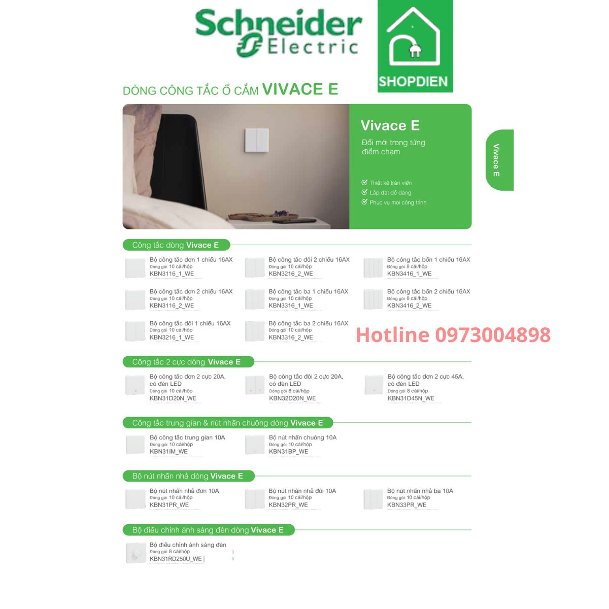 Với thiết kế sang trọng, vận hành êm ái và tính thẩm mỹ cao, chiết áp Vivace E là lựa chọn tối ưu để nâng cấp hệ thống chiếu sáng thông minh – tiện nghi – hiện đại cho mọi công trình.
