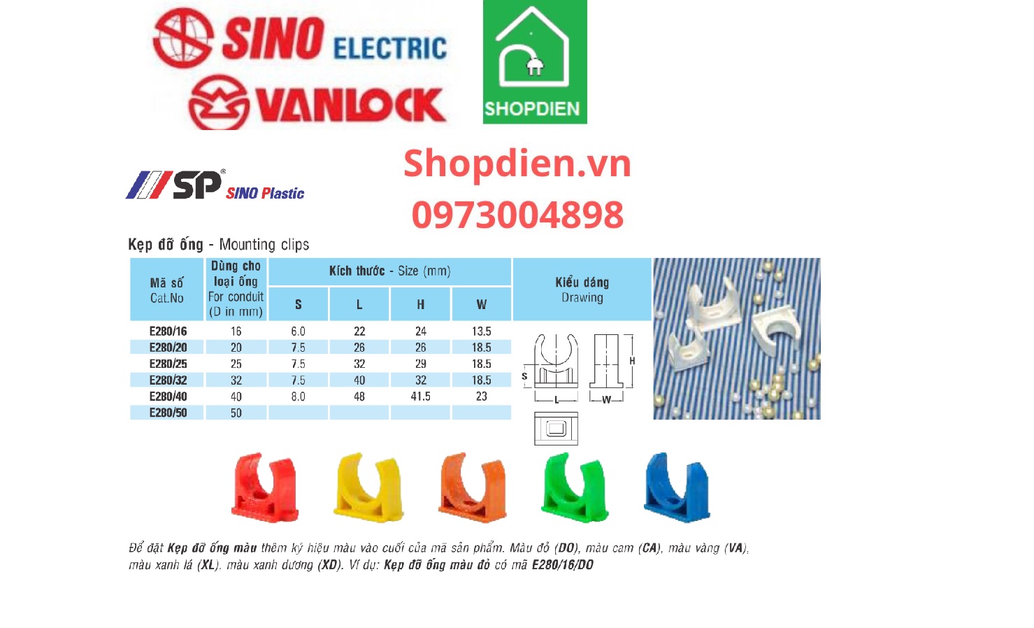 Catalogue Kẹp đỡ ống luồn dây PVC D32 SINO SP E280/32 Càng cua