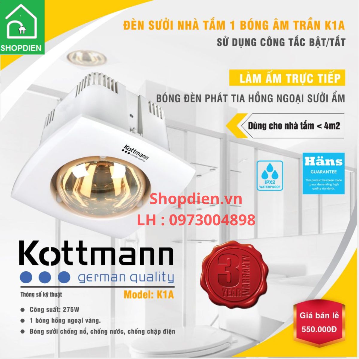 KOTTMANN K1A Đèn sưởi 1 bóng âm trần công tắc – Thông số kỹ thuật và ứng dụng