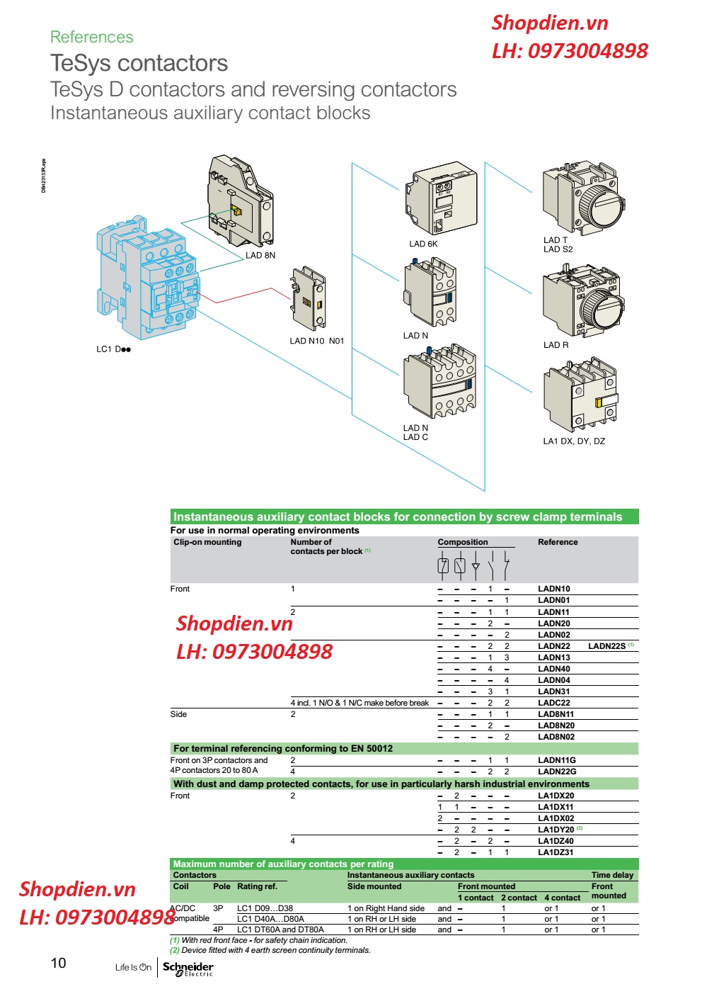 Tên sản phẩm: LC1D09BD Schneider Khởi động từ Contactor 3P 9A 24VDC Tesys Deca