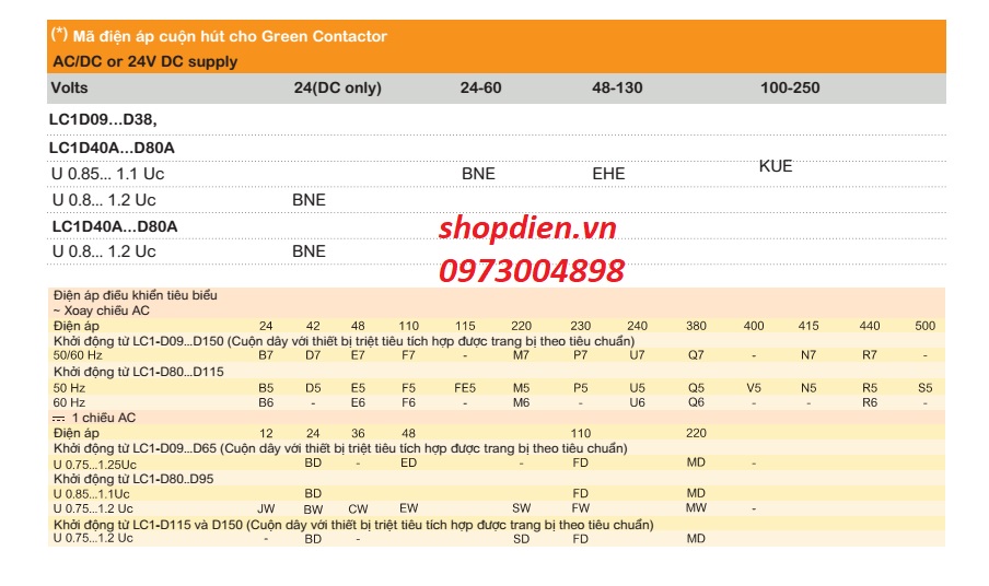 Tiêu chuẩn : Khởi động từ loại D, dùng cho điều khiển động cơ. Cuộn dây điều khiển bằng điện áp AC, DC hoặc DC tiêu thụ ít năng lượng, có bộ lọc nhiễu