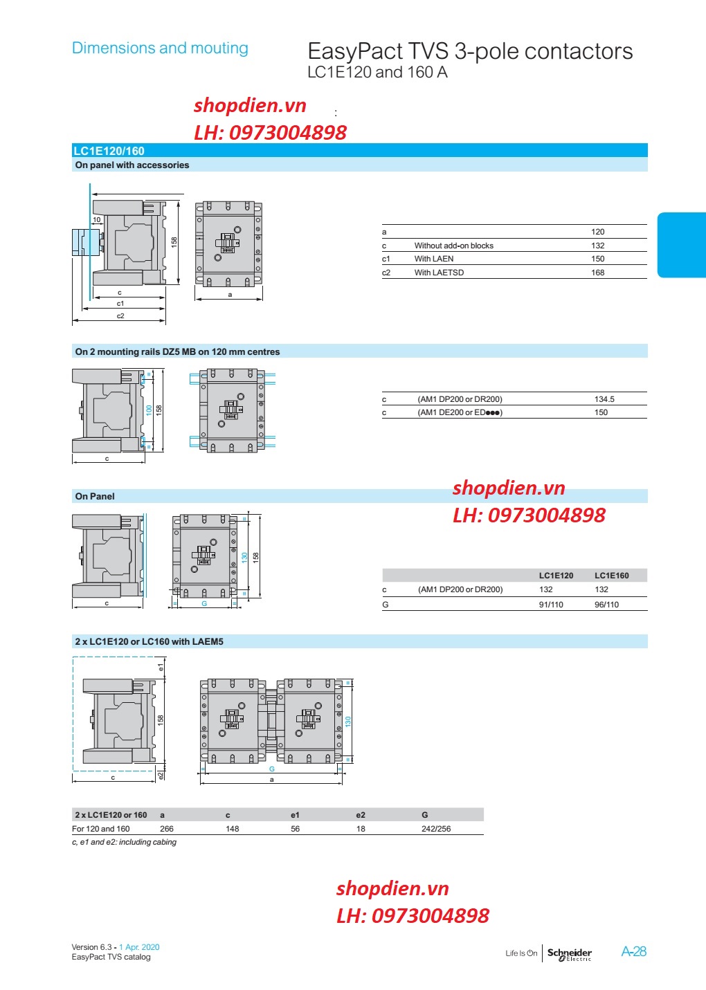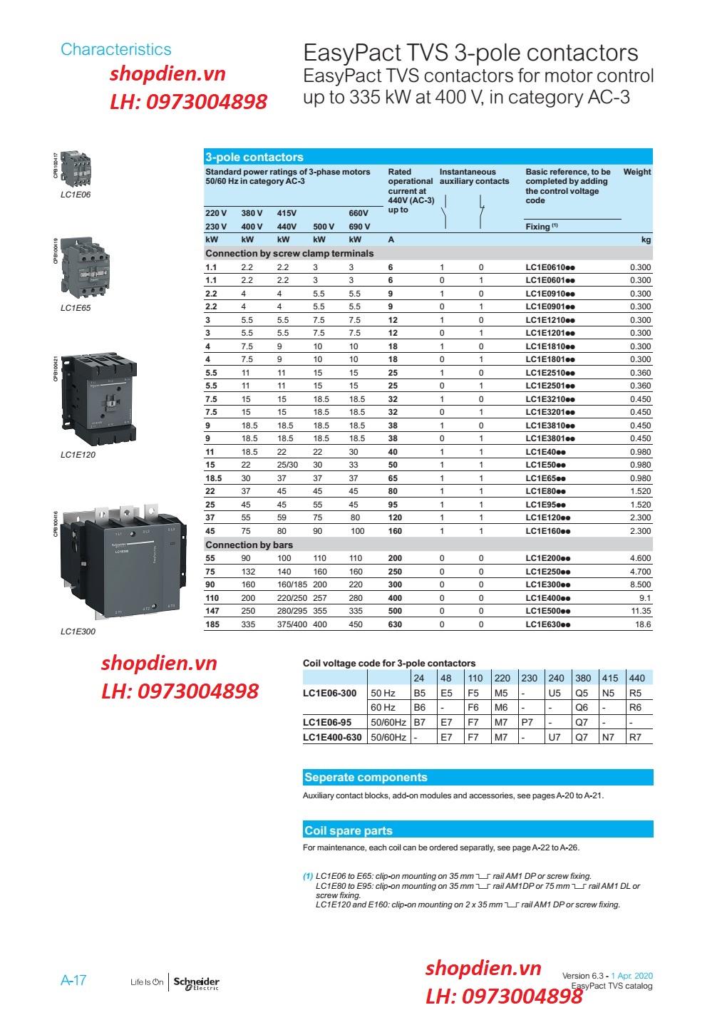 Tên sản phẩm : LC1E120M5 Schneider Khởi động từ Contactor 3P 120A 220VAC Easypact TVS