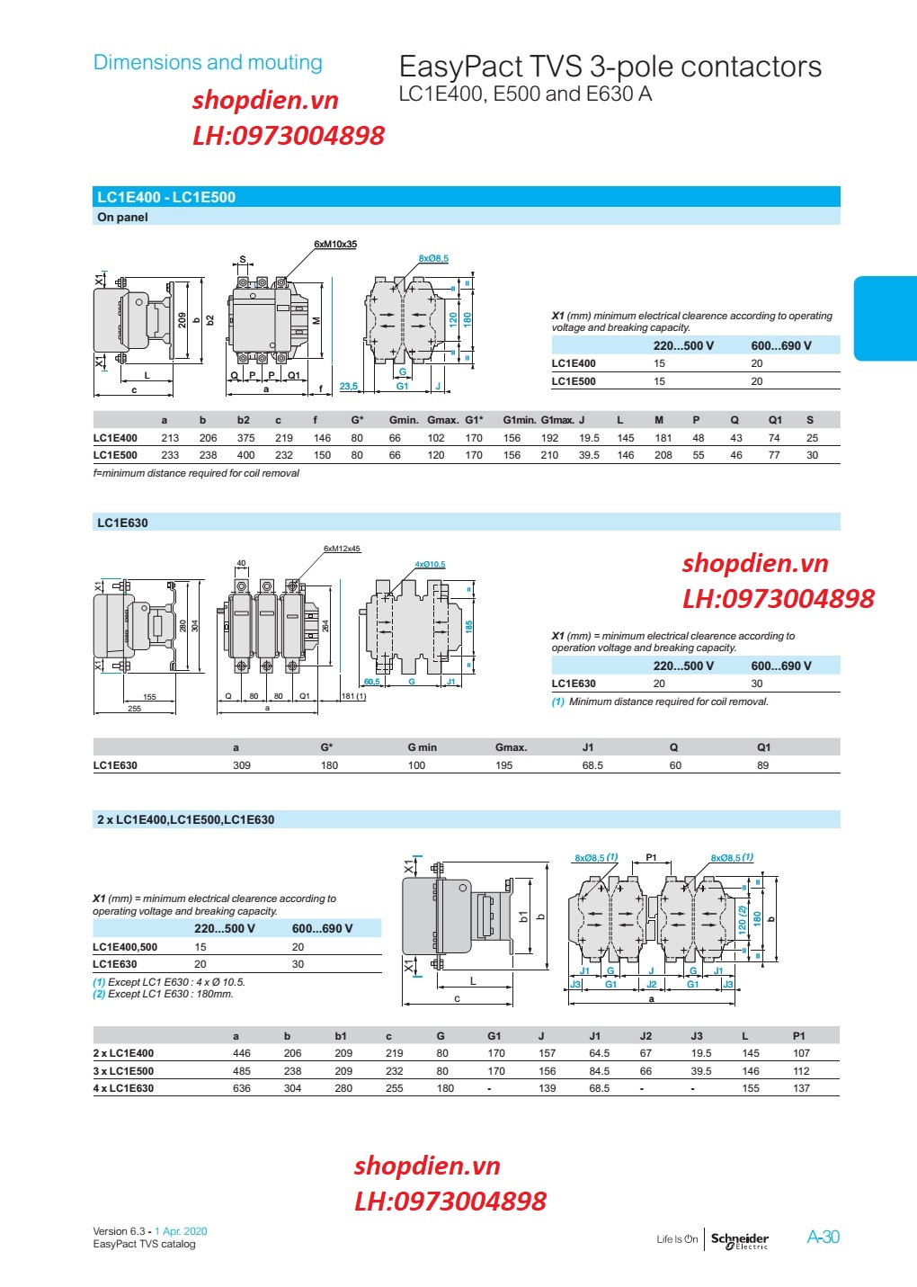 Tên sản phẩm : LC1E400M5 Schneider Khởi động từ Contactor 3P 400A 220VAC Easypact TVS