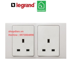 Tên sản phẩm : Ổ cắm đôi 3 chấu vuông chuẩn Anh British 13A Mallia Legrand màu trắng-281112
