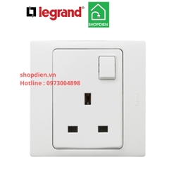 Tên sản phẩm : Ổ cắm đơn 3 chấu vuông có công tắc chuẩn Anh British 13A Mallia Legrand màu trắng-281111