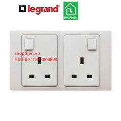 Tên sản phẩm : Ổ cắm đôi 3 chấu vuông có công tắc chuẩn Anh British 13A Mallia Legrand màu trắng-281113