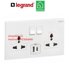 Tên sản phẩm : Ổ cắm đôi đa năng 3 chân (2P+E) có công tắc + cổng USB 15A Mallia Legrand màu trắng-281123