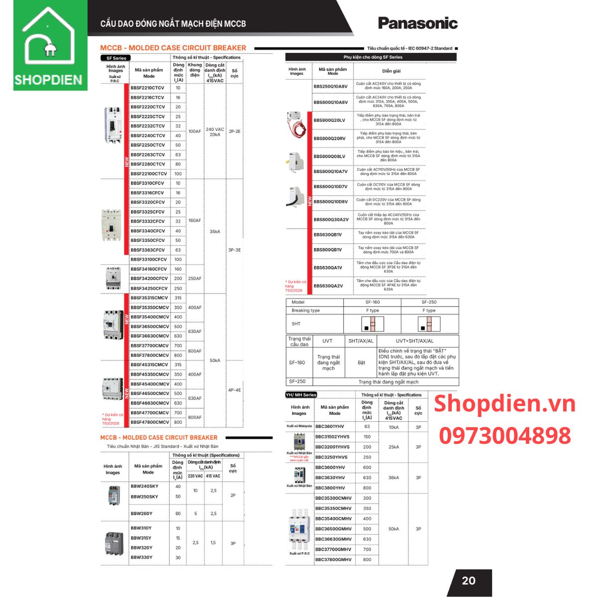 MCCB 2P 40A 20kA BBSF2240CTCV của Panasonic là cầu dao tự động dạng khối cao cấp, chuyên dùng để bảo vệ hệ thống điện 1 pha trước các sự cố quá tải và ngắn mạch. Sản phẩm có khả năng cắt dòng sự cố lớn, đảm bảo an toàn và độ tin cậy cao trong quá trình vận hành.