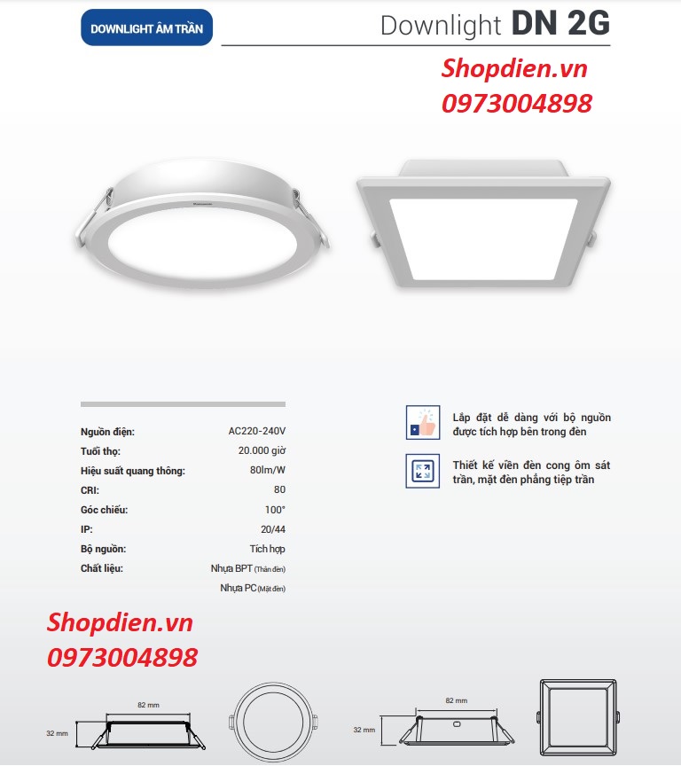 TÊN SẢN PHẨM : NNV70031WE1A Panasonic Đèn Downlight âm trần 9W D90 DN 2G AS vàng 3000k