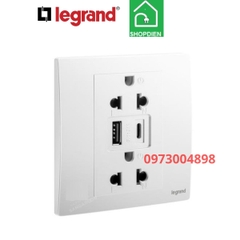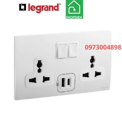 Tên sản phẩm : Ổ cắm đôi đa năng có công tắc và ổ sạc USB Legrand 281123MW Mallia Senses màu trắng