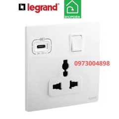 Tên sản phẩm : Ổ cắm đơn đa năng có công tắc và sạc USB Mallia Senses Legrand 281125MW màu trắng