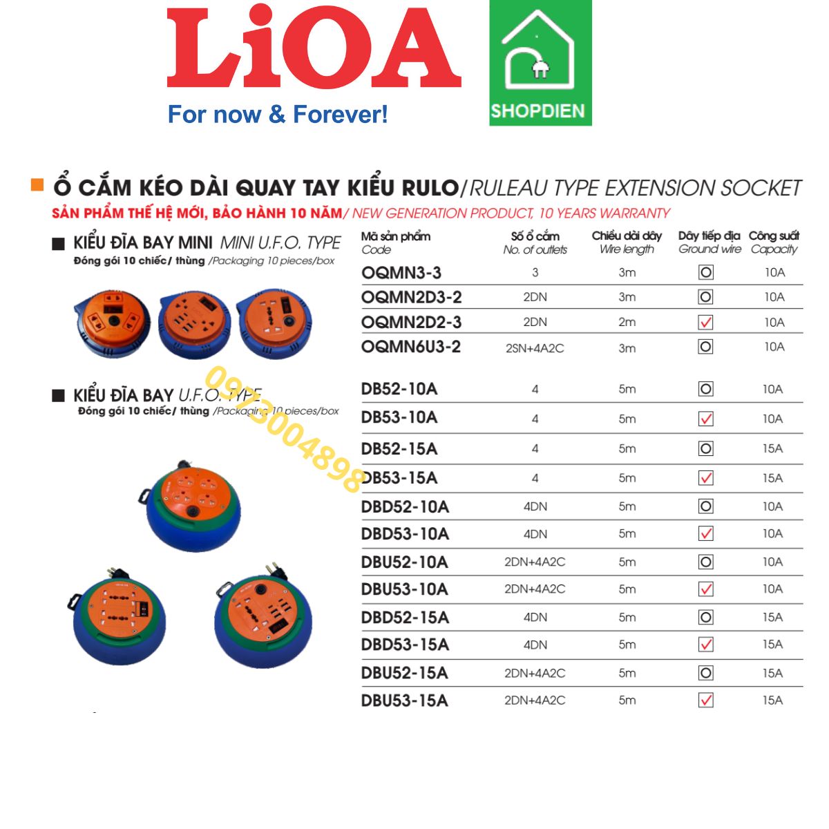 OQMN2D3-2 LIOA Ổ cắm kéo dài Rulo quay tay 2 cổng đa năng của LIOA là giải pháp cấp điện linh hoạt, an toàn và tiện lợi cho nhiều nhu cầu sử dụng trong gia đình, văn phòng hay công trình. Sản phẩm được thiết kế dạng cuộn rulo quay tay, giúp thu gọn và bảo quản dây dễ dàng, hạn chế rối hoặc hư hỏng dây điện.