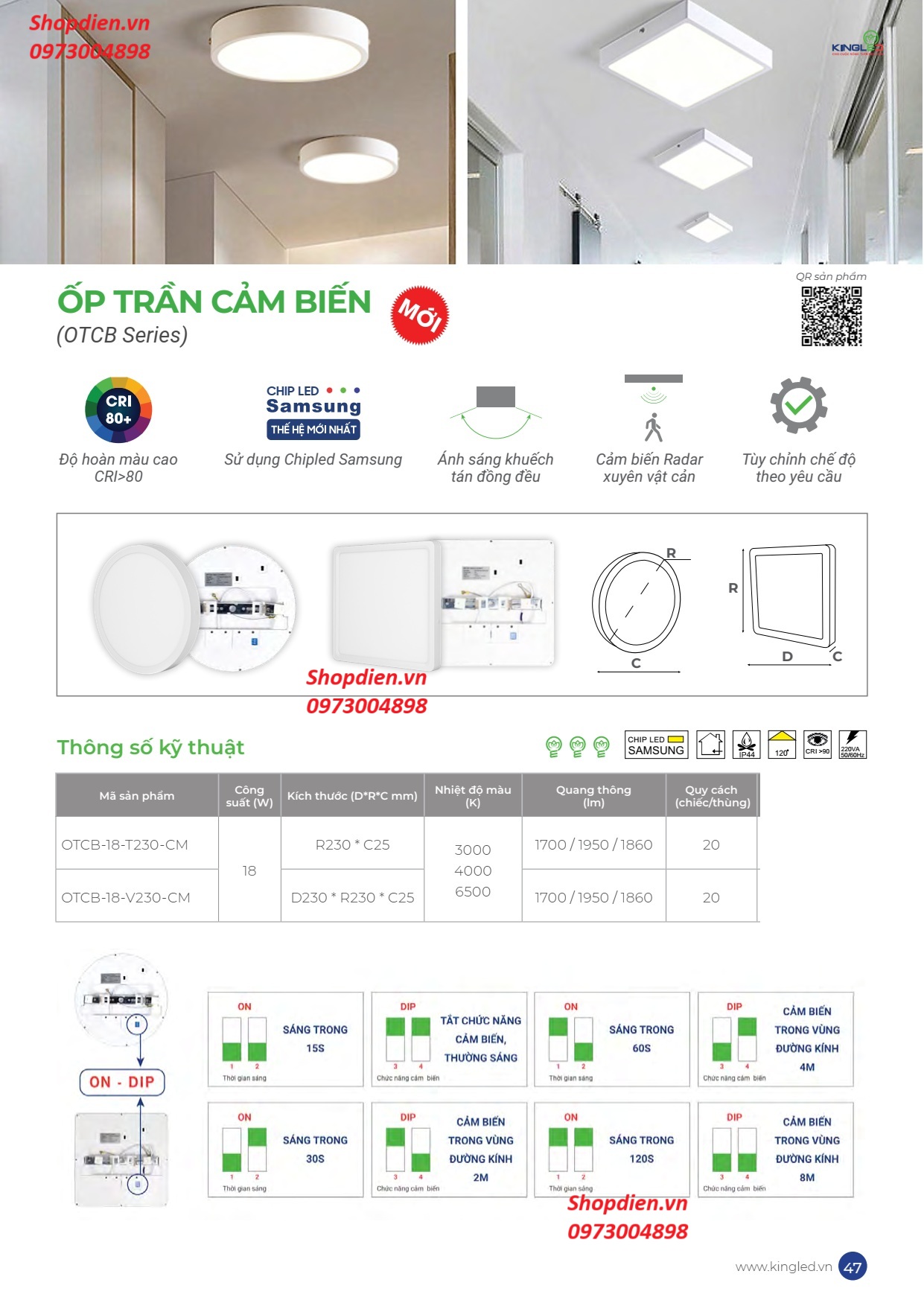 Catalogue: OTCB-18-V230-CM KINGLED Đèn ốp trần cảm biến 18W 230x230