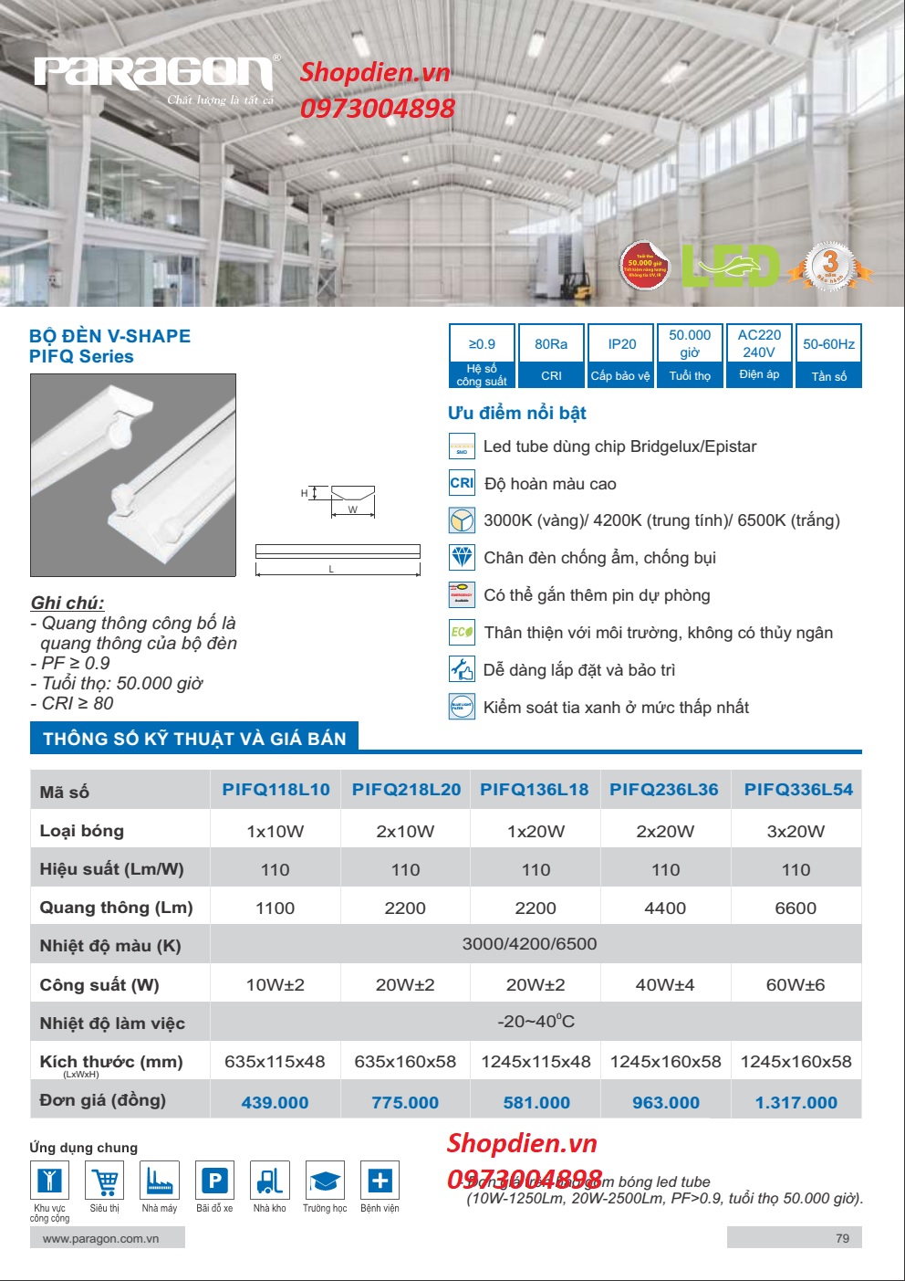 Bộ đèn led V shape PIFQ136L18 Paragon được coi là công nghệ chiếu sáng thế hệ mới với hiệu quả vượt trội so với những sản phẩm chiếu truyền thống. Sản phẩm được đánh giá là thiết bị tiêu thụ ít năng lượng, tuổi thọ cao và không hề chứa các chất độc hại nên rất an toàn cho người sử dụng.