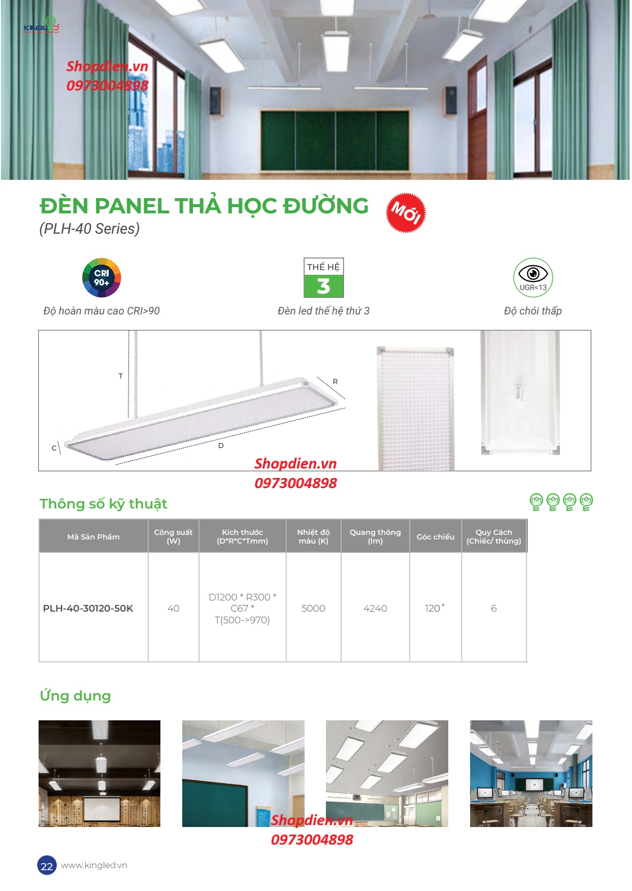 Catalogue : PLH-40-30120-50k KINGLED Đèn panel thả học đường 40W 300x1200