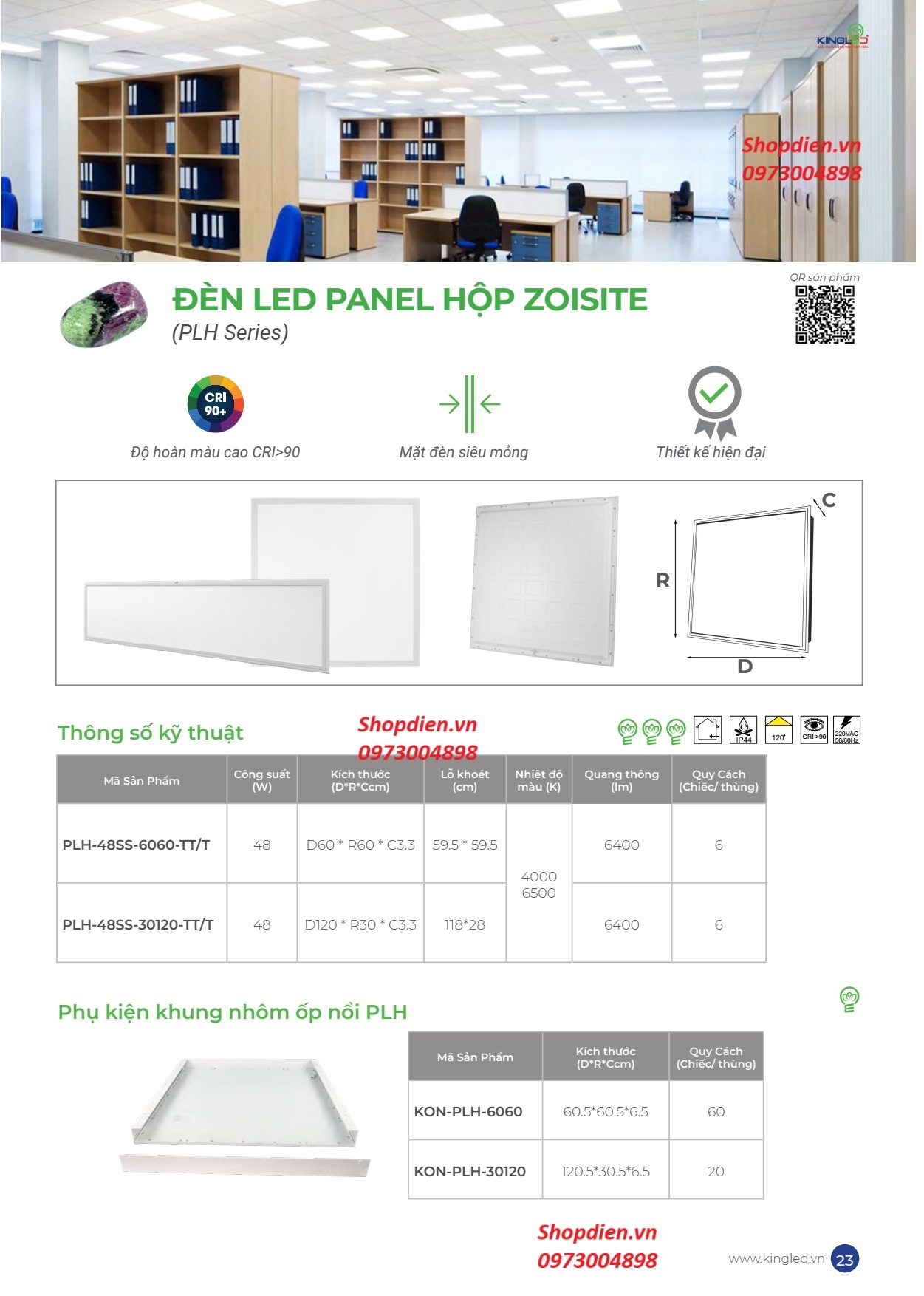 Catalogue : PLH-48SS-30120 KINGLED Đèn LED panel 48W 300x1200 ZOISITE