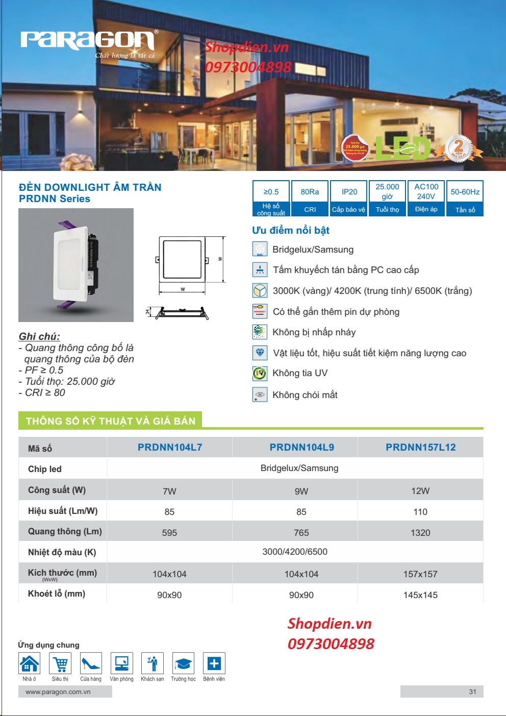 Đèn LED Downlight 12W âm trần PRDNN157L12 Paragon có thiết kế được ưa chuộng độc đáo, độ bền vượt trội và công nghệ chiếu sáng siêu bền, thiết kế chắc chắn mang đến cho bạn những trải nghiệm chiếu sáng tuyệt vời và thú vị. Sản phẩm có chế độ bảo hành 2 năm