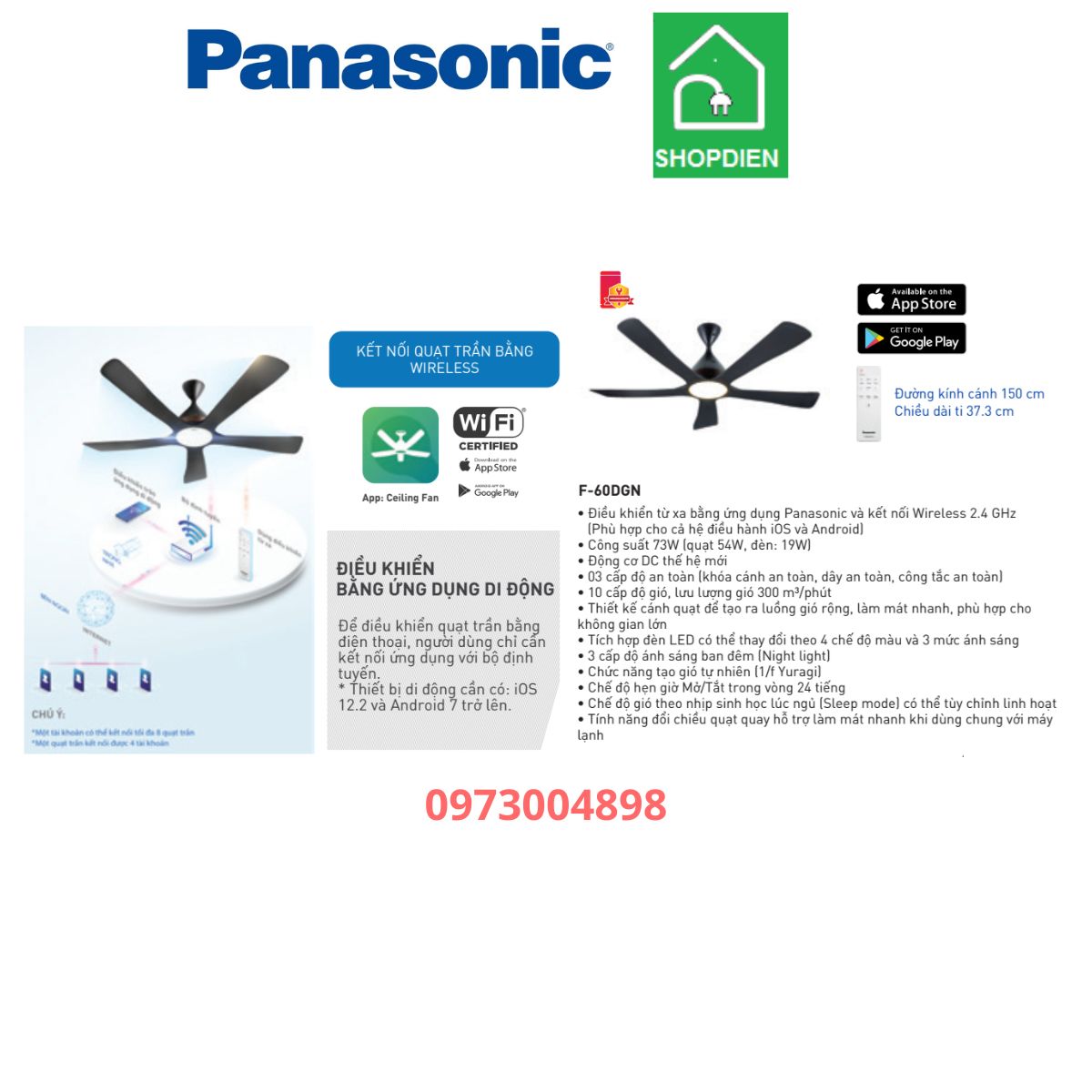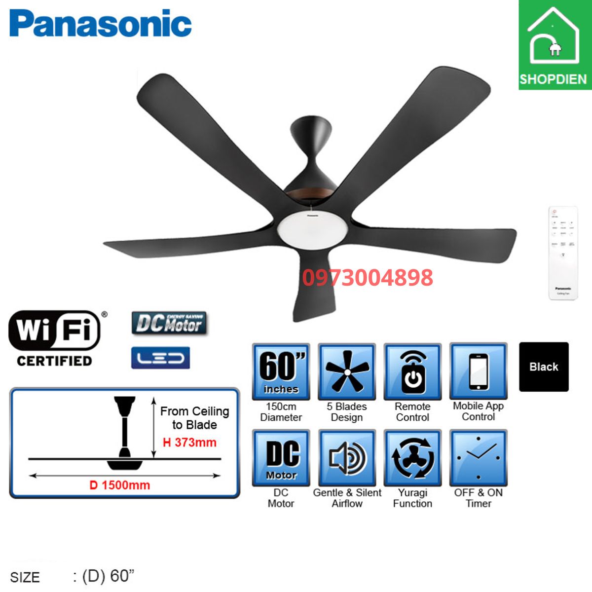 Tên sản phẩm : Quạt trần 5 cánh màu đen Panasonic F-60DGN điều khiển ứng dụng app wifi