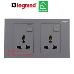 282435-C3 Legrand Galion Ổ cắm đôi đa năng có công tắc màu xám bạc Dark Silver