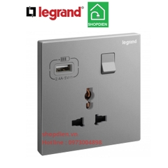 282442-C3 Legrand Galion Ổ cắm đơn đa năng và USB type A xám bạc Dark Silver