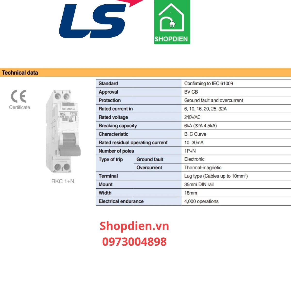 TÊN SẢN PHẨM: RKC 1P+N LS RCBO 2P 20A 30mA 6kA Aptomat chống rò chống giật