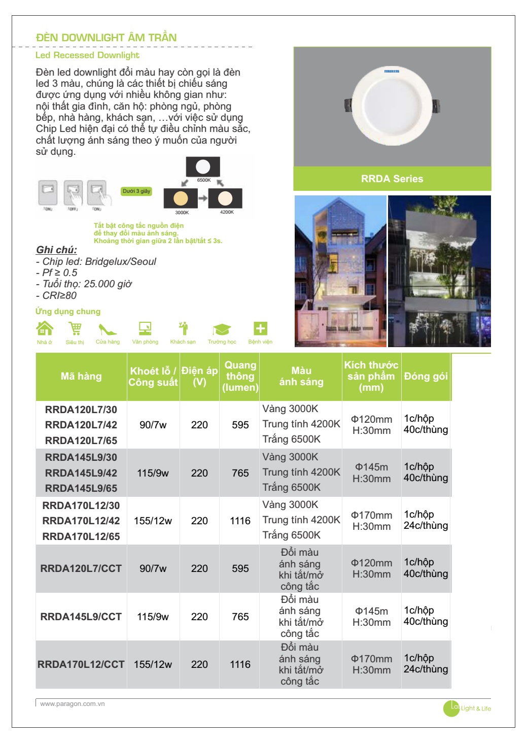 TÊN SẢN PHẨM : RRDA170L12 Paragon Đèn downlight âm trần 12W D155 RRDA