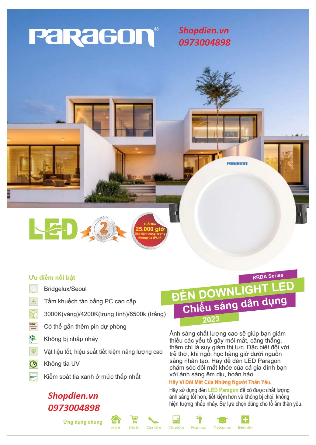Đèn LED Downlight 12W Dân dụng RRDA170L12 Paragon có thiết kế được ưa chuộng độc đáo, độ bền vượt trội và công nghệ chiếu sáng siêu bền, thiết kế chắc chắn mang đến cho bạn những trải nghiệm chiếu sáng tuyệt vời và thú vị. Sản phẩm có chế độ bảo hành 2 năm.