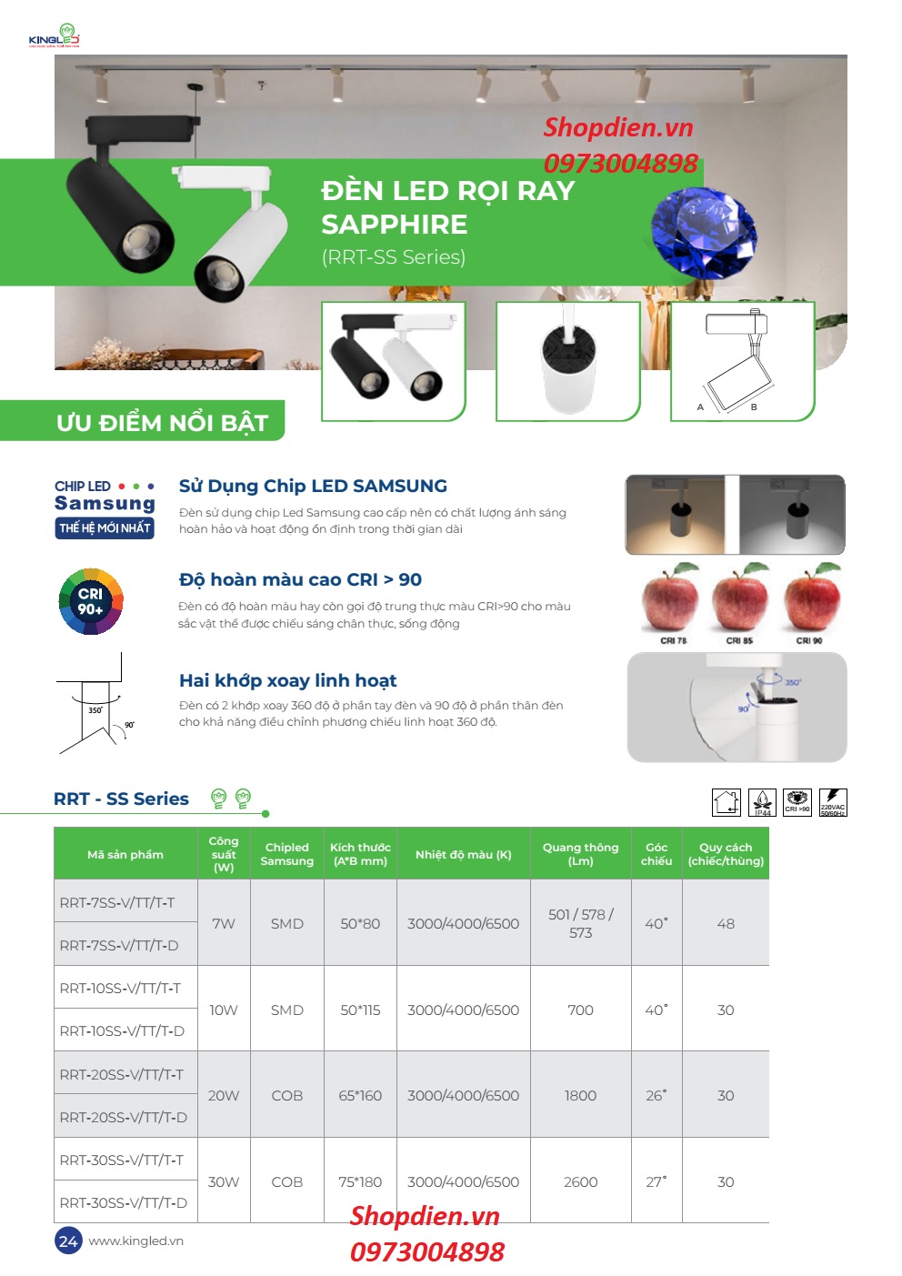 Catalogue : RRT-20SS KINGLED Đèn LED rọi ray 20W SAPPHIRE