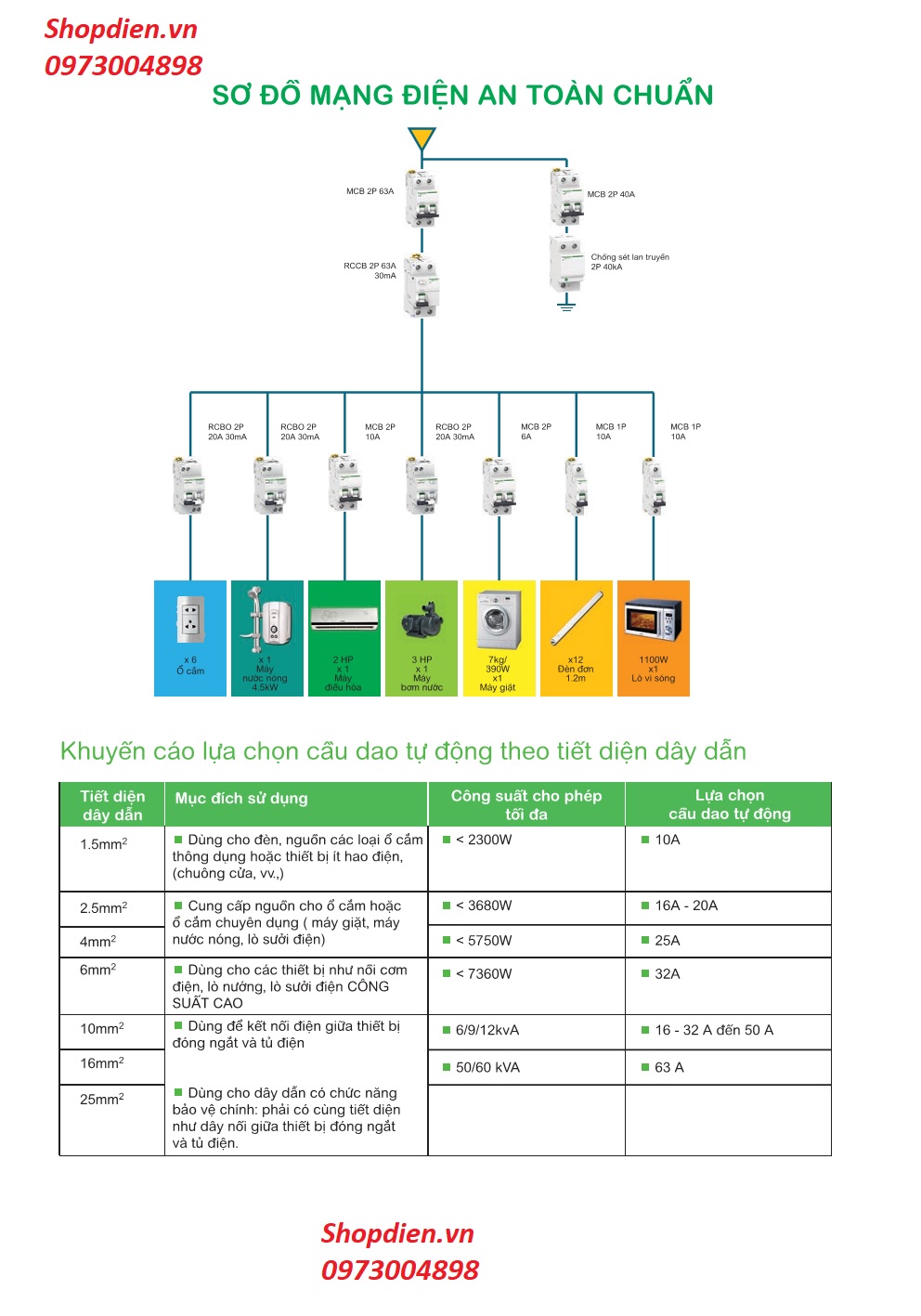 - Phải lắp đặt trên dây pha; khuyến khích lắp đặt thiết bị bảo vệ đóng cắt đồng thời cả dây pha và dây trung tính.