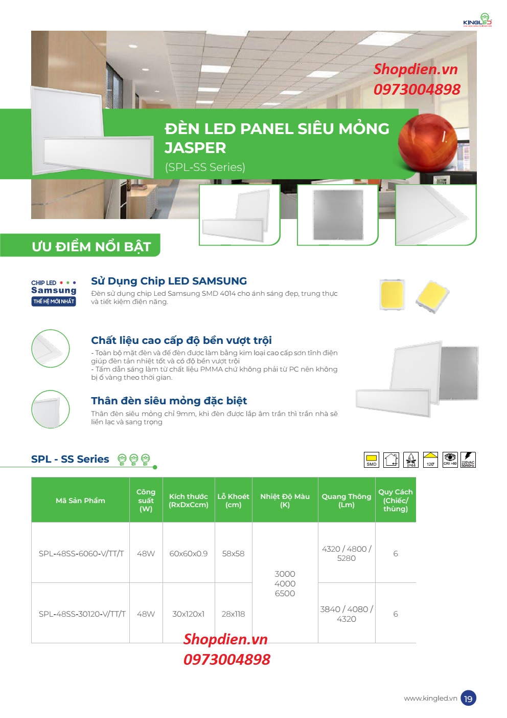 Catalogue : SPL-48SS-6060 KINGLED Đèn LED panel 48W 600x600 Jasper siêu mỏng