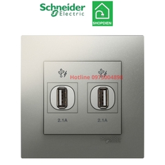 KB32USB_AS_G19 Schneider Ổ cắm sạc USB đôi 2.1A Vivace Màu xám bạc