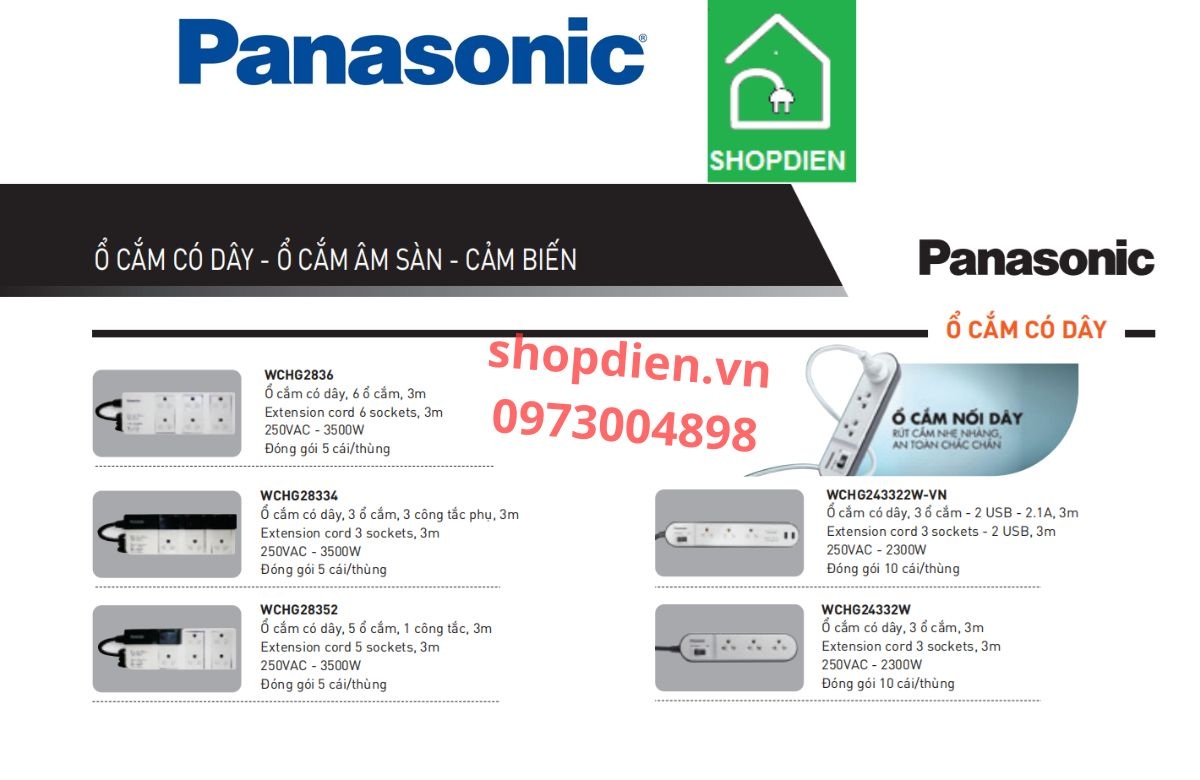 Ổ cắm kéo dài WCHG2836 Panasonic là lựa chọn hoàn hảo cho nhu cầu kết nối điện an toàn, tiện lợi và bền bỉ.
