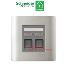 Tên sản phẩm : E8432TDRJS_6SA_G19 Schneider Ổ cắm mạng cat6 và điện thoại ZENCELO màu xám bạc