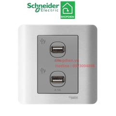 Tên sản phẩm : E8432USB_SA_G19 Schneider Ổ cắm sạc USB đôi Zencelo màu xám bạc