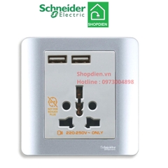Tên sản phẩm : E8442616USB_SA_G19 Schneider Ổ cắm đa năng và sạc USB đôi Zencelo màu xám bạc