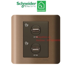 Tên sản phẩm : E8432USB_SZ_G19 Schneider Ổ cắm sạc USB đôi Zencelo màu đồng