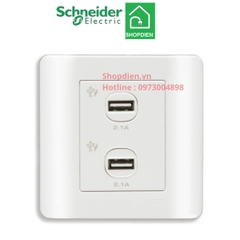 Tên sản phẩm : E8432USB_WE_G19 Schneider Ổ cắm sạc USB đôi Zencelo màu trắng